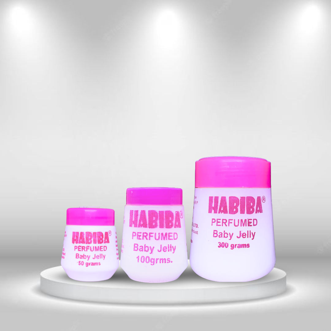 Habiba® Baby Jelly is designed to keep your baby’s skin soft and protected from dryness. Its mild formula and gentle fragrance make it perfect for everyday use. Available in 50g, 100g, and 300g.