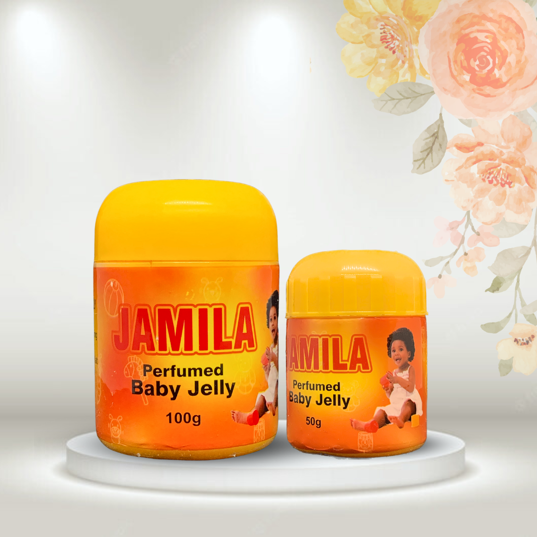 Jamila® Baby Jelly is a soothing, moisturizing formula for delicate baby skin. It prevents dryness and diaper rashes while leaving a mild, fresh scent. Available in 50g and 100g.